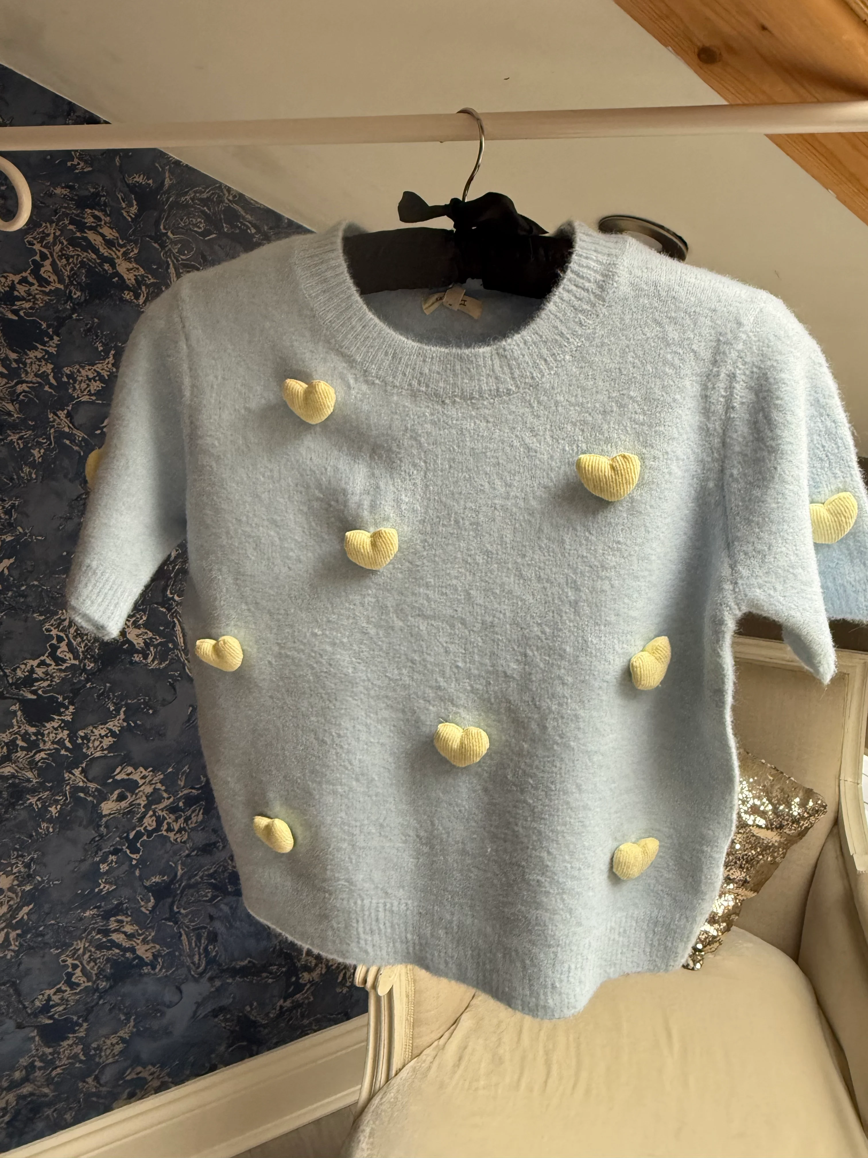 This beautiful knitted round neck t-shirt is sprinkled with 3D lemon hearts all over the front, adding the sweetest pop of colour and charm. Soft, lightweight and easy to wear, it’s the perfect piece to brighten up your wardrobe.