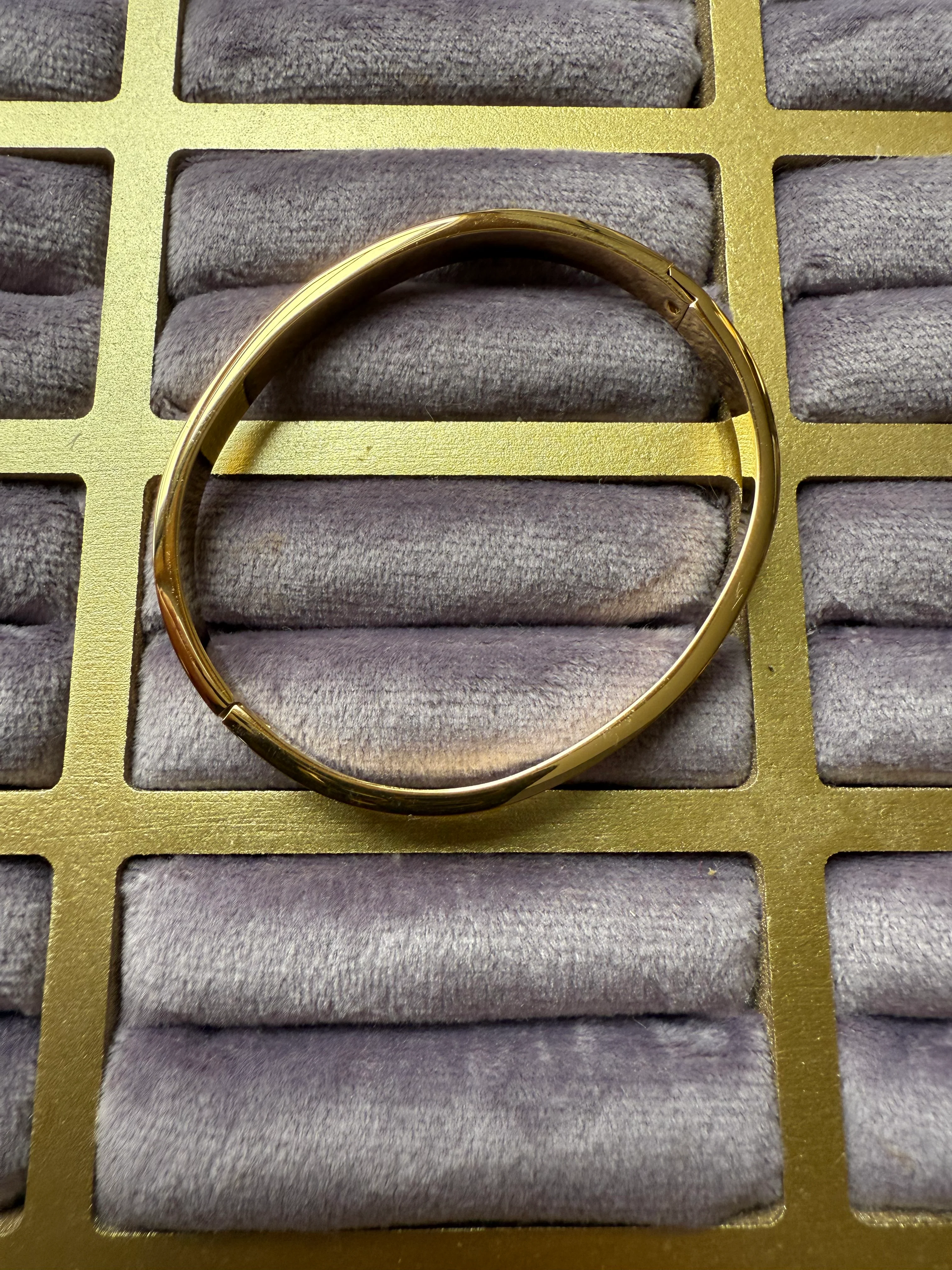This polished bangle, adorned with a single line of precision-set sparkling stones, captures timeless sophistication. Its sleek silhouette and refined shine make it the perfect finishing touch — whether worn solo for understated grace or stacked for modern glamour.