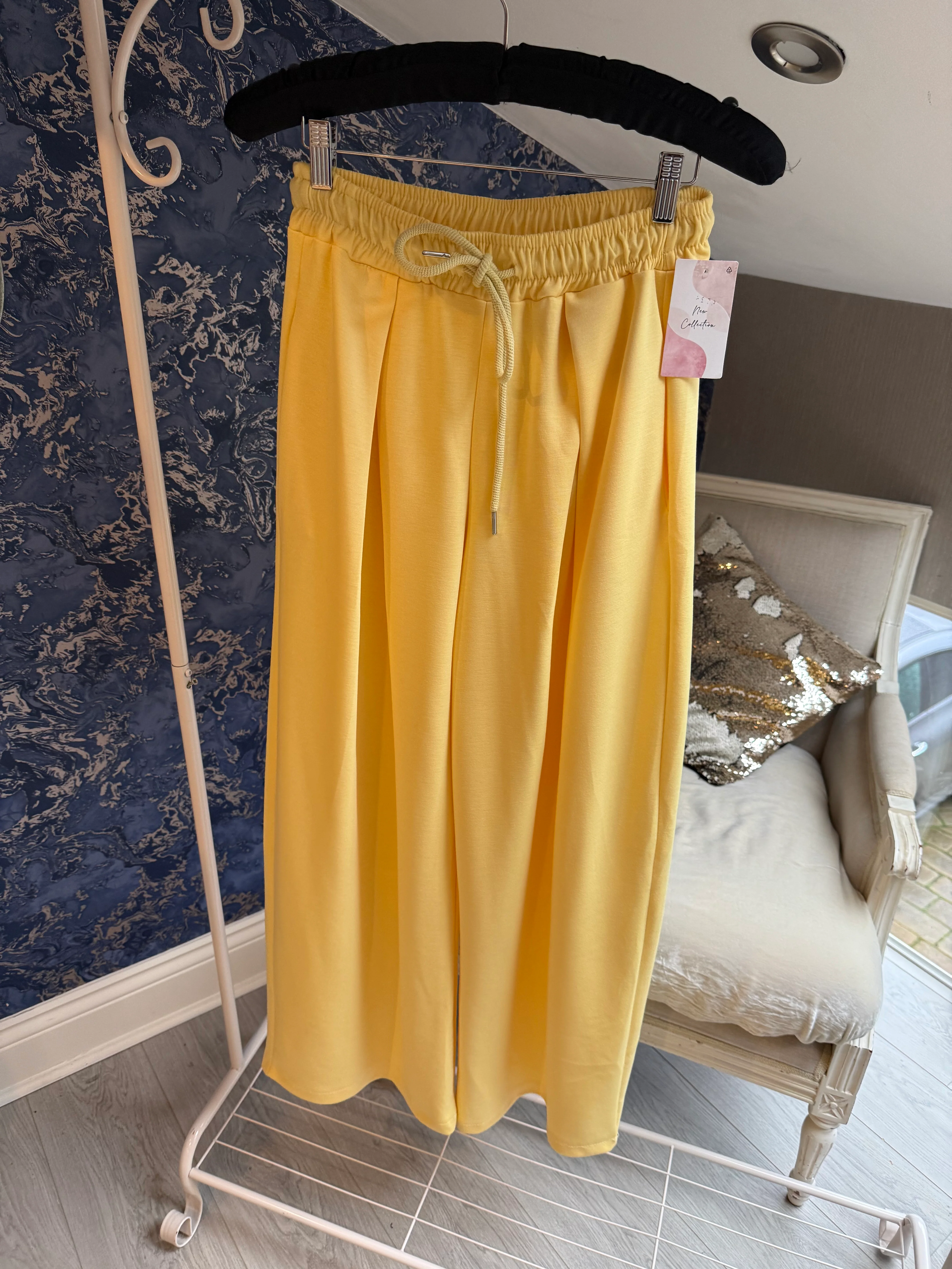 YELLOW PLEATED FRONT JOGGERS